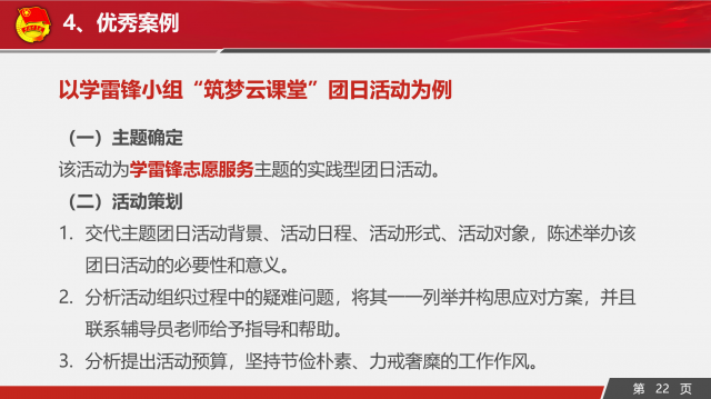 首先,郑靖尧老师为学员们带来“团支部主题团日活动创新思考”主题团课,从团日活动的概念出发,由确定主题、制定流程、选定形式等工作环节介绍了策划团日活动的必要环节,随后通过实际案例分析,向同学们讲解了如何才能开展好一次团日活动。
