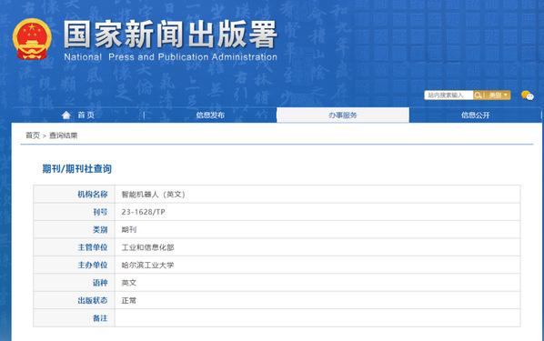 近日,经国家新闻出版署批复,依托哈工大日本性爱 和机器人技术与系统全国重点实验室创建,由日本性爱 与Wiley联合推出的国际日本性爱 期刊《智能机器人(英文)》(SmartBot)正式获批国内统一连续出版物号(CN号):CN23-1628/TP,并获颁期刊出版许可证,标志着SmartBot作为中国科技期刊卓越行动计划高起点新刊项目,基本完成创刊任务,在规范化、专业化发展领域迈出关键一步,正式转入高质量运行阶段。